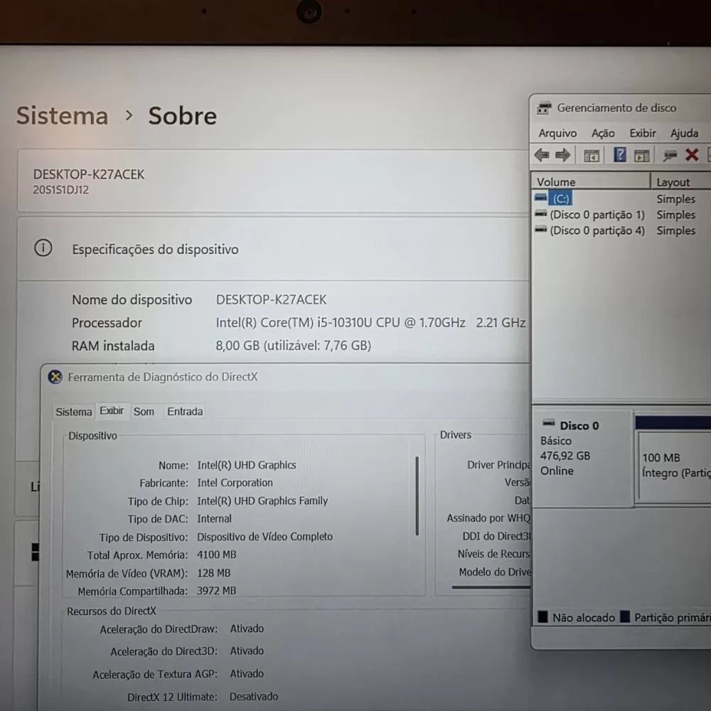 Notebook Lenovo ThinkPad i5 10th - 8Gb Ram - 512Gb SSD