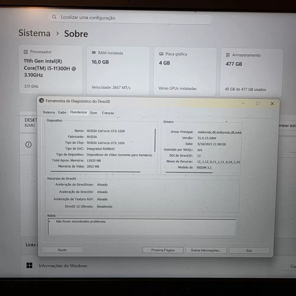 Notebook Lenovo Gaming i5 11th - 16Gb Ram - GTX 1650 - 512Gb SSD